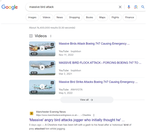 Haven’t you heard about the massive bird attacks? I believe these are all intentionally planned by the Dark forces in preparation of a secret agenda involving bird-focused training. Let me show you some examples, and you can easily ‘google’ them as follows: