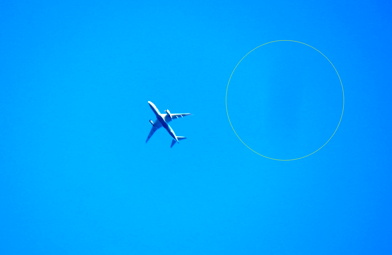 이 사진에서 보는 것처럼 원본사진도 그나마 투명UFO가 일부러 찍혀 주기 위해서 투명도를 낮추고 속도도 줄여서 찍혀 준 것인데도 보일 듯 말 듯 저러하니 실로 하늘에서 저들을 찾기란 불가능 하다 할 것이다.